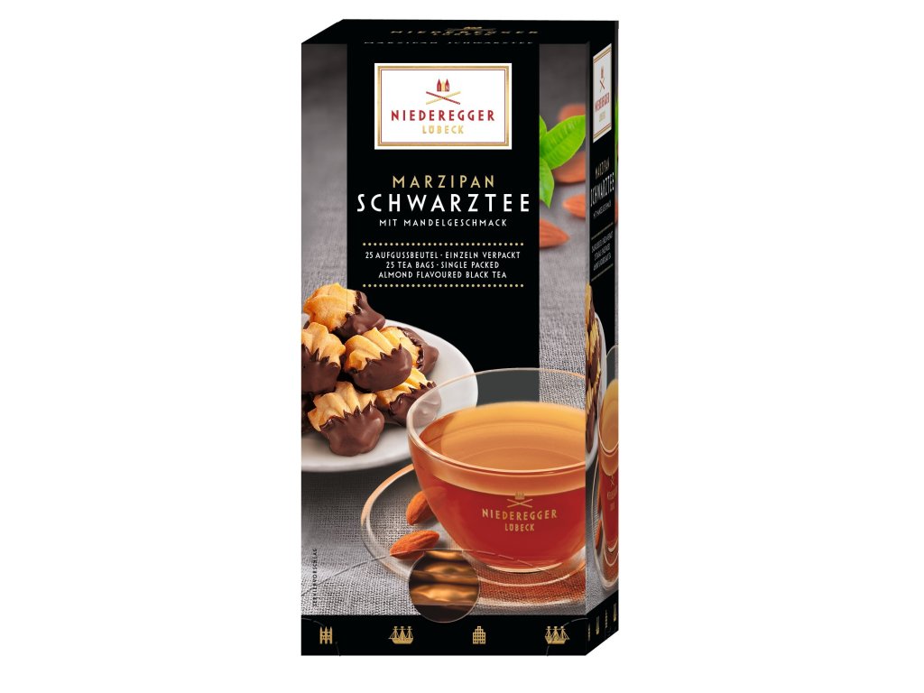 Jedinečné potěšení z pití. Niederegger marcipánový černý čaj kombinuje nenapodobitelnou marcipánovou chuť s intenzitou černého čaje. Vanilkové aroma vytváří vyvážený požitek s harmonickým vkusem. Posaďte se a vychutnejte si přestávku s lahodným teplým nápojem.