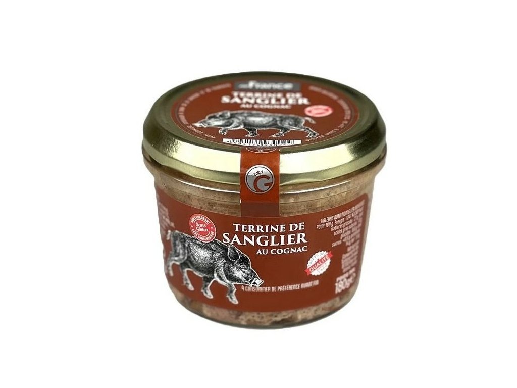 vepřové maso, kančí maso 21%, kuřecí játra, mléko, vejce, sůl, koňak 0,8 %, koření, přírodní aroma.